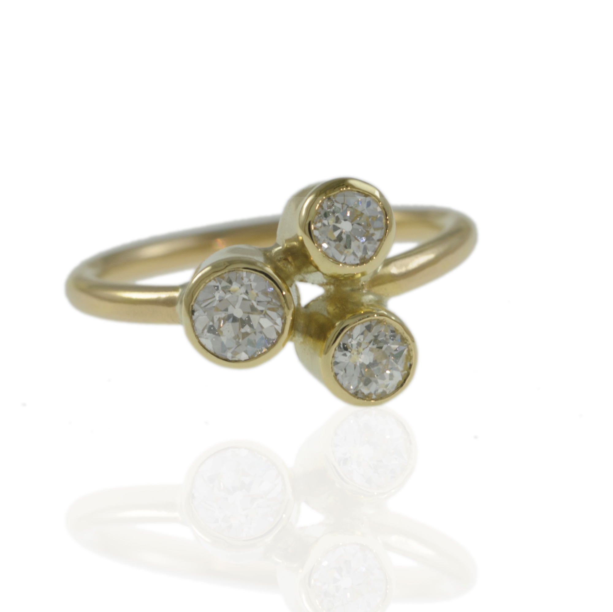 I worked on three of these rings. Two were existing 9ct rings (not made by me) where I changed the stone setting to something more secure (one of the diamonds had previously been lost). I also made an 18ct one to match using the customer's gold.
